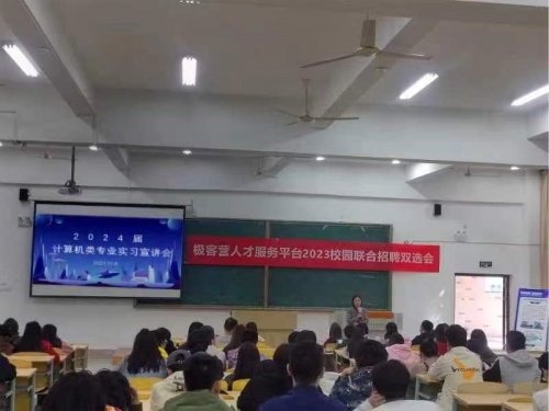 为更好推进学生实习、就业工作,实现“访企拓岗促就业”工作的实效性,为2024届毕业生开拓更多实习岗位和就业机会,促进2024届毕业生更充分更高质量实习、就业。工业互联网学院携手中智软创﹑联想集团﹑澳鹏科技﹑拉卡拉云商科技﹑安恒信息和长电科技在阶112教室开展系列校园实习宣讲会。工业互联网学院党总支副书记管芳景、信息技术系副主任潘婷婷、学工办主任曹於亮、21级辅导员、各班班主任以及近200多名学生参加宣讲会。会议由潘婷婷主持。