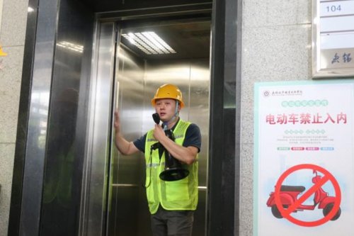 活动设置了电梯故障逃生及疏散演练、人员应急救护等环节。维保人员向现场师生讲解了日常乘坐电梯的注意事项,被困时应如何正确应对等。在演练环节模拟了电梯在运行过程中突发故障,被困学生立即拨打求救电话、按下紧急呼叫按钮,物业人员接到警报立即启动电梯突发事件预案,通知维保单位到场实施解救,维保人员到达故障电梯处,设置安全警示围栏,使用三角钥匙打开电梯门,在10分钟内顺利救出被困学生。