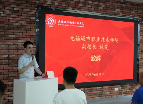 图2:副校长林俊致辞 蒋斌在讲话中对无锡城市职业技术学院与信缆智能科技(无锡)有限公司校企合作办学表示祝贺。他指出,无人机机场应用技术综合了机械、电气、网络、软件和无人机技术,是新质生产力的典型代表,具有广阔的行业前景,并鼓励订单班学员勤奋学习,为将来步入企业积累扎实的专业知识和技能。