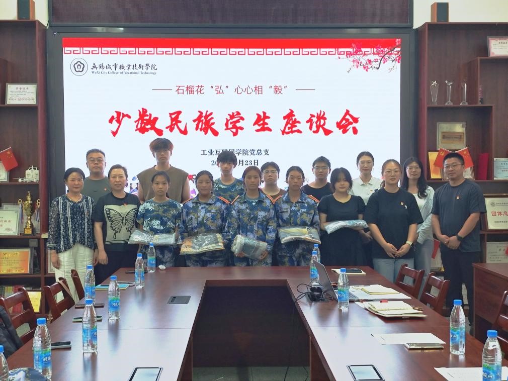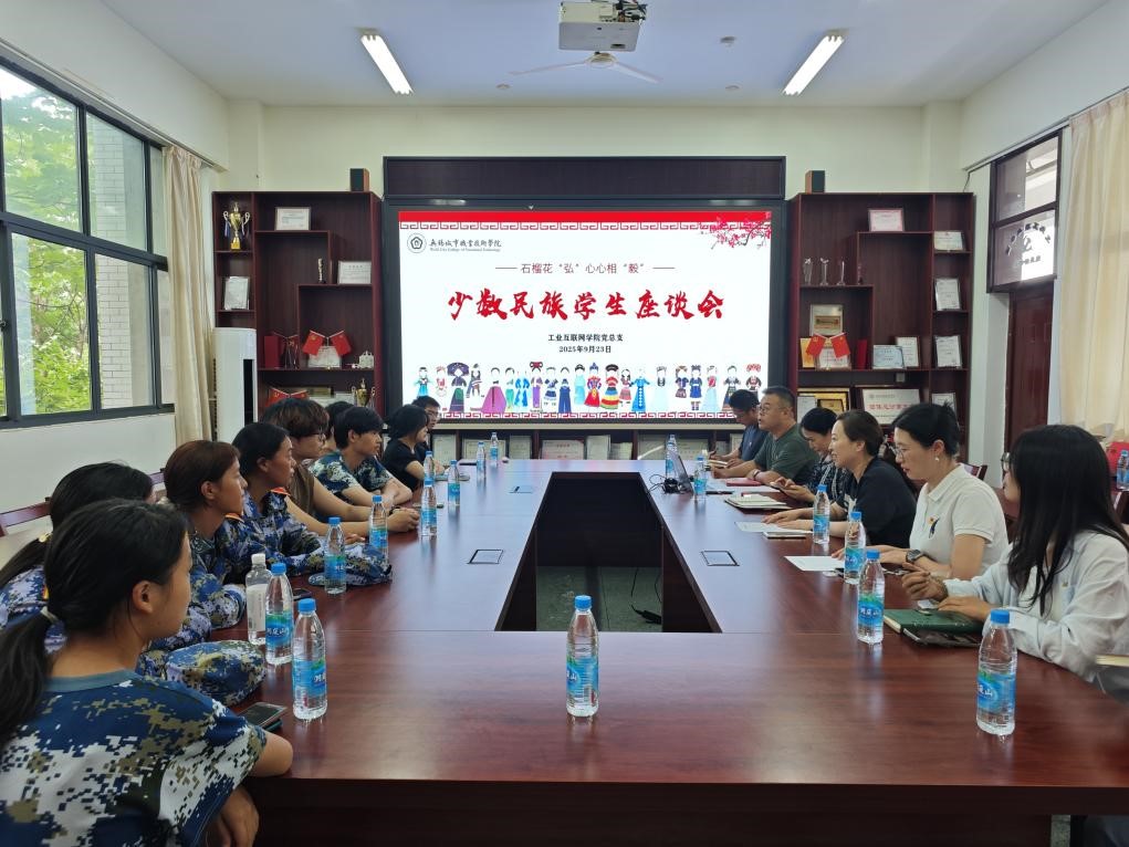 中华民族一家亲,同心共筑中国梦。在中华民族大家庭中,大家只有像石榴籽一样紧紧抱在一起,手足相亲、守望相助,才能实现民族复兴的伟大梦想,民族团结进步之花才能长盛不衰。为深化民族团结进步教育,铸牢中华民族共同体意识,9月22日下午,工业互联网学院在1206会议室召开少数民族学生座谈会,学校党委委员、纪委书记刘瑾、工业互联网学院党总支书记任靖福、副院长赵吉、副书记李铭、学工办主任曹於亮出席,24级辅导员陈玲燕、25级辅导员王晓晗带领学院少数民族学生参加,活动由李铭主持。