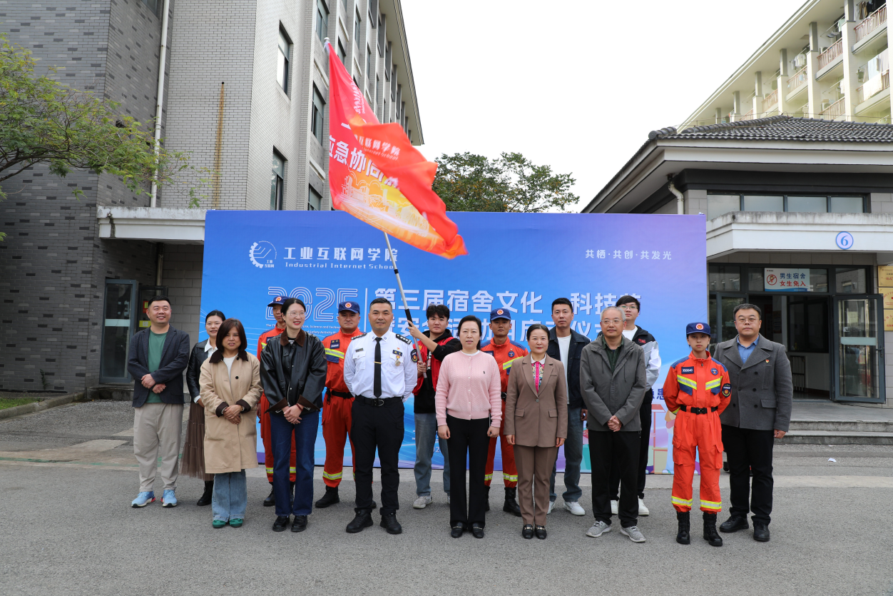 为全面落实立德树人根本任务,推进学校“一站式”学生社区建设,丰富学生课余文化生活,激发社区创新活力,构建安全、创新、和谐的宿舍生活环境,2025年11月5日,工业互联网学院“智寓未来·安全同行”宿舍文化科技节暨安全活动月启动仪式在6号宿舍楼一站式隆重举行。校党委委员纪委书记刘瑾、保卫处副处长黄世峰、无锡市先锋救援队队长马强,学院党政领导、系主任、全体辅导员、专业教师代表及600余名学生代表共同参与,标志着为期一个月的宿舍文化科技盛宴暨安全活动月正式拉开帷幕。
