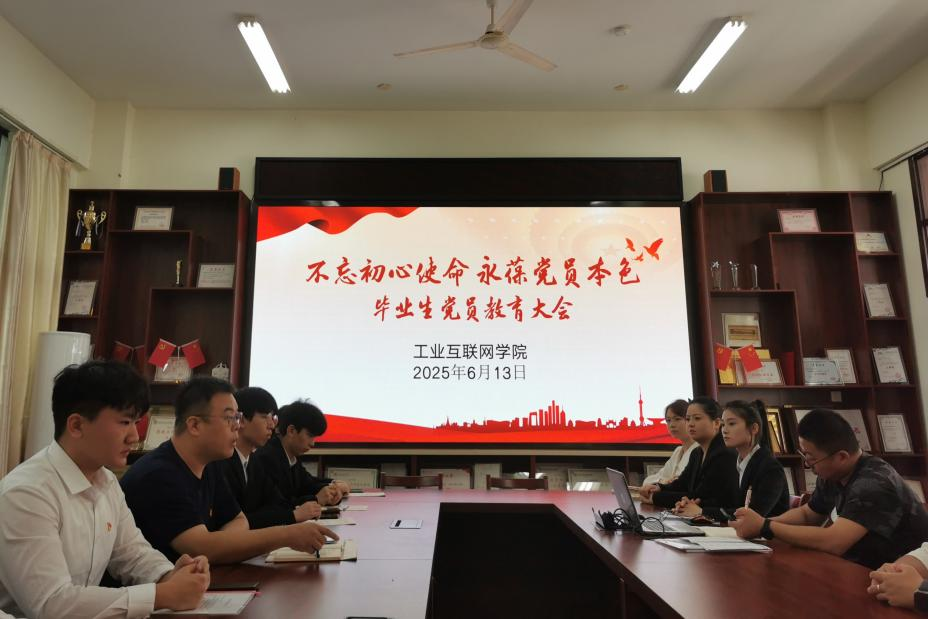 学生党支部书记曹於亮围绕毕业生党员党性教育、党组织关系转接等做毕业生离校教育。院党总支副书记李铭以廉洁为切入点,提醒毕业生党员走上工作岗位后要做到思想上补钙铸魂,扣紧廉洁自律的“扣子”,叮嘱毕业生党员在工作中要注重保守秘密,守好国家安全底线,坚定不移贯彻总体国家安全观。 三、“携手同行 共创未来”校友联络员聘任 工业互联网学院组织2025届优秀毕业生加入学院校友会,为其颁发2025届毕业生校友联络员证书。学生表示一定会牢记母校嘱托,以高度的责任感和使命感,认真履行校友联络员职责,凝聚校友力量,助力母校高质量发展。